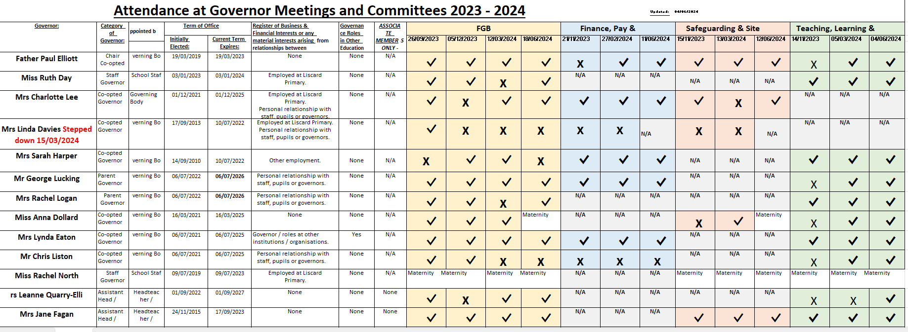 A. Governors Attendance and Information 2021-2022 B. Governors Attendance and Information 2022-2023 C. Governors Attendance and Information 2023-2024 D. Governors attendance and information - 2024-2025 E. Governing Body - Terms of Reference and Governor Meeting Dates 2025-26 F. Code of Conduct Governors LPS Sept 2025 G. Governor Visits Policy Sept 2025 H. NGA-Diversity Indicators July 2023 I. NGA - Skills Audit Survey July 2024 J. Curriculum Monitoring by Governors Sept 2024